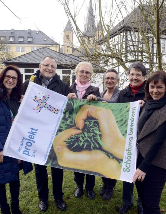 Sie stellten das Projekt "Schöpfung bewahren" der Gemeinde St. Johannes und Mariä Himmelfahrt in Erkrath vor (v.l.): Silke Erkelenz, Pfarrer Günter Ernst, Elisabeth Adelskamp, Martha Heinecke, Elisabeth Bayer und Nicole Schaffmeister. |