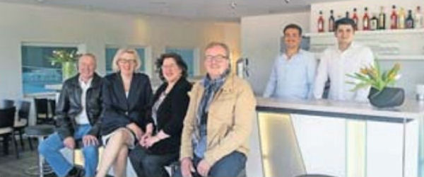 (v.li.) Pressewart Ernst Becker, 2. Vorsitzende Angela Damhers, 1. Vorsitzende Edda Bretz-Risse, Architekt Winfried Melles, Gastronomen Denis Memedi und Berat Tairi. |