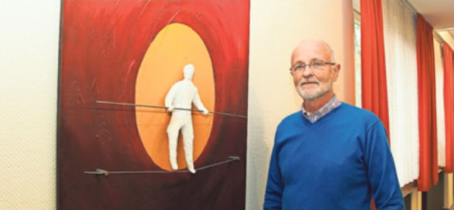 Unterbach. (nima) Als Gastkünstler zeigt dort der Erkrather Bildhauer und Vorsitzende des Kunst und Kulturraum Erkrath e.V., Wolfgang Sendermann, eine Auswahl an Holzskulpturen und Wandobjekten. Die Ausstellung ist bis Freitag, 30. Oktober, täglich von 14 bis 19 Uhr geöffnet. Seit vielen Jahren war Wolfgang Sendermann in diesem Jahr erstmals wieder bei der Unterbacher Kunstmeile dabei. Die Möglichkeit, bei der AWO ein paar Tage über die beiden eigentlichen Veranstaltungstage hinaus ausstellen zu können, war dabei für ihn entscheidend. „Für zwei Tage ist so eine Ausstellung doch immer sehr viel Arbeit", weiß er. Gerade bei seinen großen, schweren Skulpturen lohne sich der Aufwand kaum. Bei einer ganzen Woche sieht die Sache schon ganz anders aus! Kurzfristig hatte der Holzbildhauer die Räume des AWO-Zentrums auch mit Wandobjekten bestücken dürfen. Ursprünglich hätte er sich den Platz mit Bildern des verstorbenen Berliner Künstlers Rudi Lesser teilen müssen, doch diese konnten nicht gezeigt werden, da Lessers Tochter, die im AWO-Zentrum Plus Yoga-Kurse gibt und die Ausstellung vorbereiten wollte, erkrankt war. „Das hätte schon gut zusammengepasst", sagt Ines Beckmann-Wehnes einerseits enttäuscht über den Ausfall und andererseits erfreut, dass