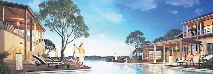 Das „Vabali Spa“ soll Ende 2016 an ein balinesisches Dorf erinnern – mit elf Saunen. |