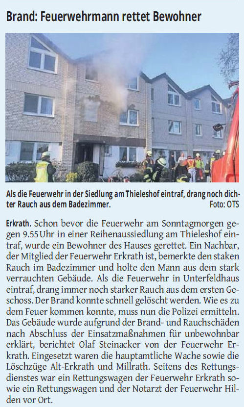 > Brand: Feuerwehrmann rettet Bewohner