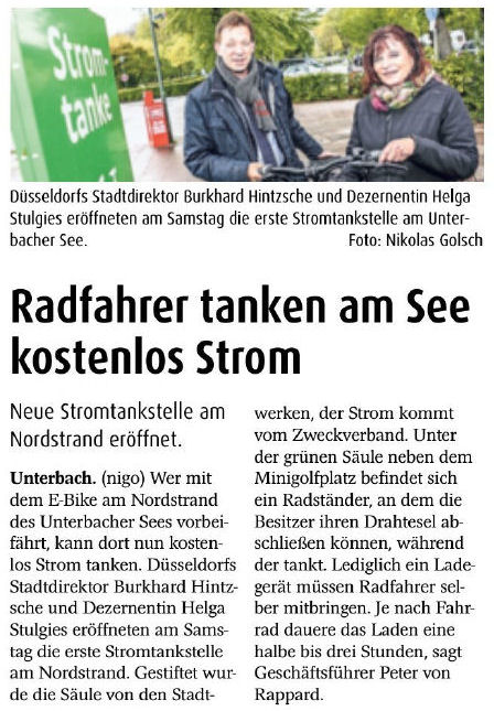 > Radfahrer tanken am See kostenlos Strom