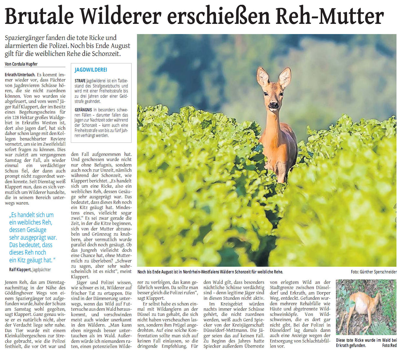> Brutale Wilderer erschießen Reh-Mutter