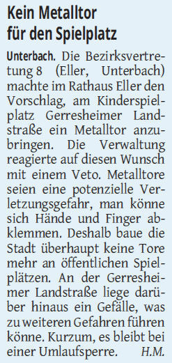 > Kein Metalltor für den Spielplatz