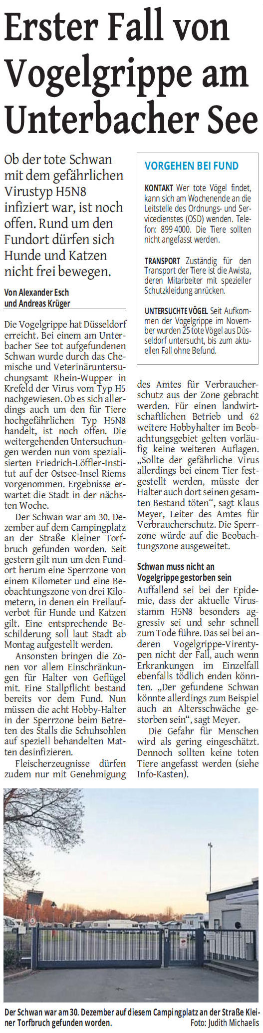 > Erster Fall von Vogelgrippe am Unterbacher...